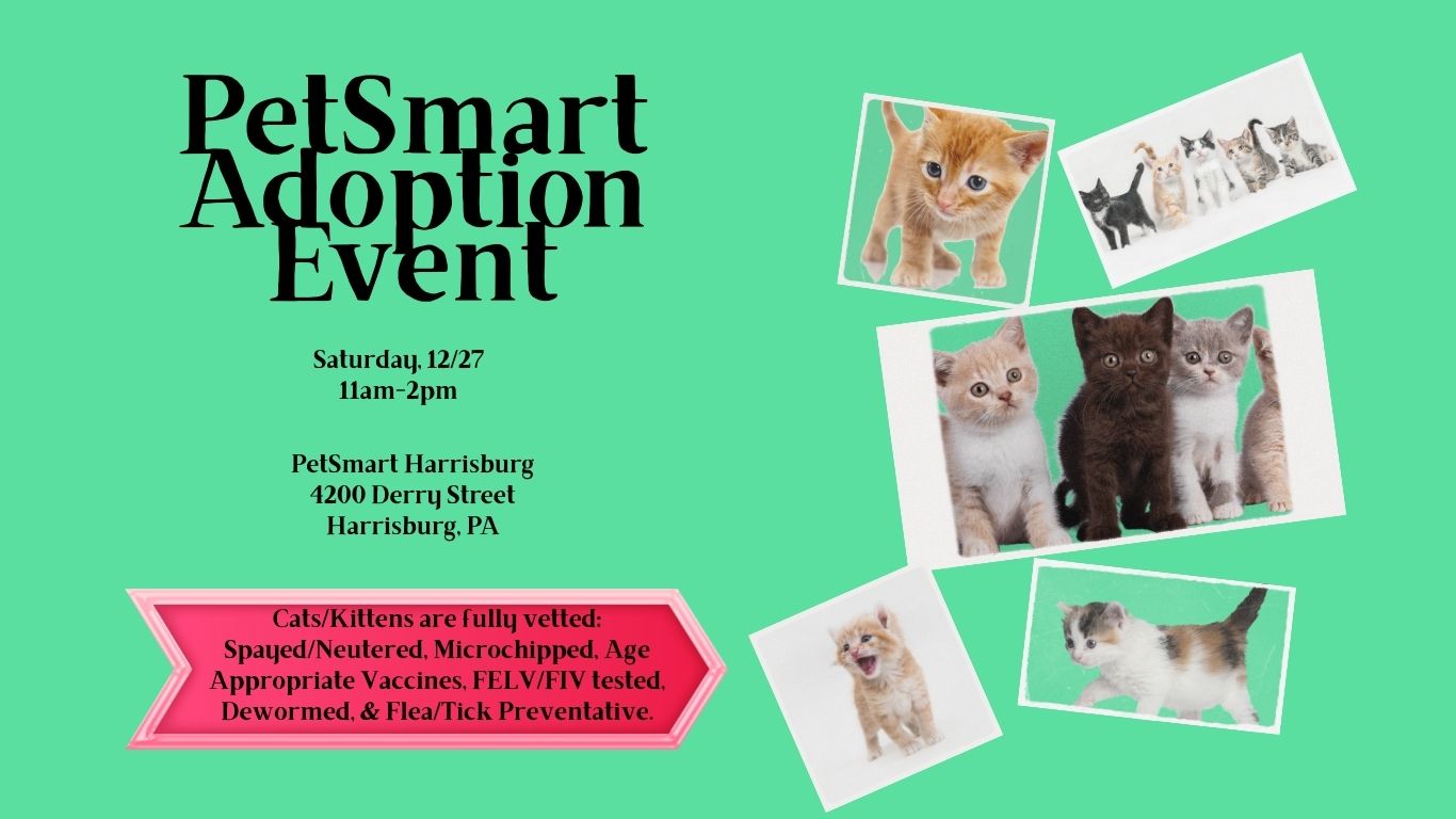 Join us Saturday, December 27th, from 11am–2pm at PetSmart Harrisburg to meet a wonderful selection of cats and kittens looking for their forever homes. 💛 You may just find the one who steals your heart!